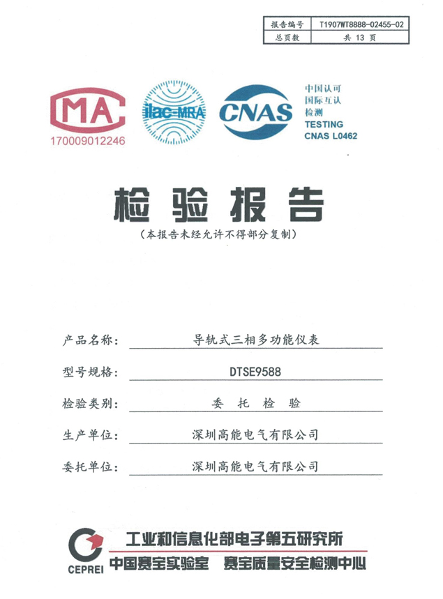 DTSE9588三相導軌表(檢驗報告)